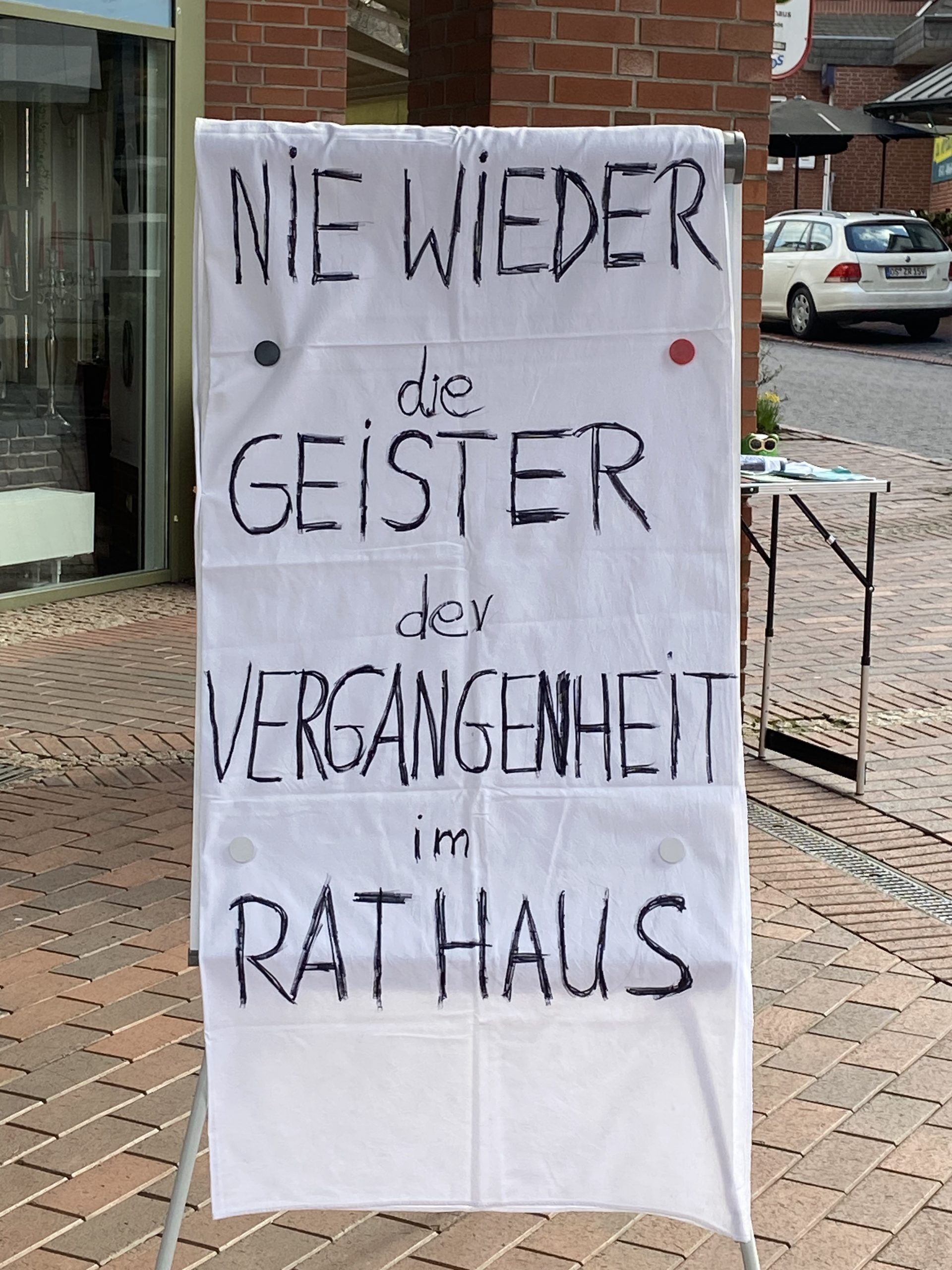 08.10.2021 – Gesprächsstand auf dem Markt in Gmh. Unterschriftensammlung gegen die Einrichtung eines Bordells in Gmh. Außerdem eine Umfrage zur Umbenennung der Hindenburgstraße – ja oder nein